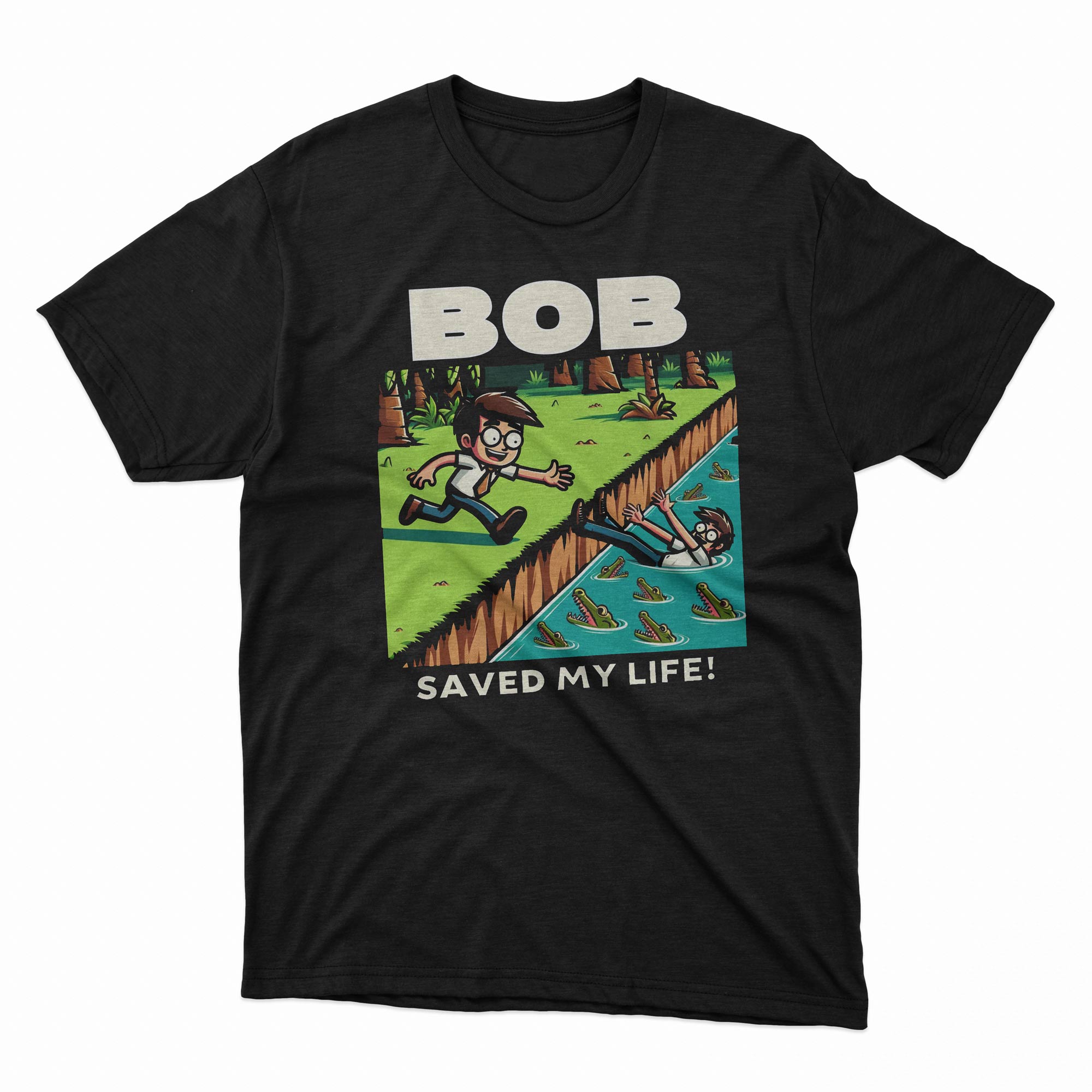 Whether you’re out with friends or just want to brighten your day, the “Bob Saved My Life!” t-shirt is sure to be a hit. It’s not just a tee, it’s a statement – humor, irony, and a bit of good old clumsiness rolled into one. Get yours now and join the fun of Bob’s accidental heroics!