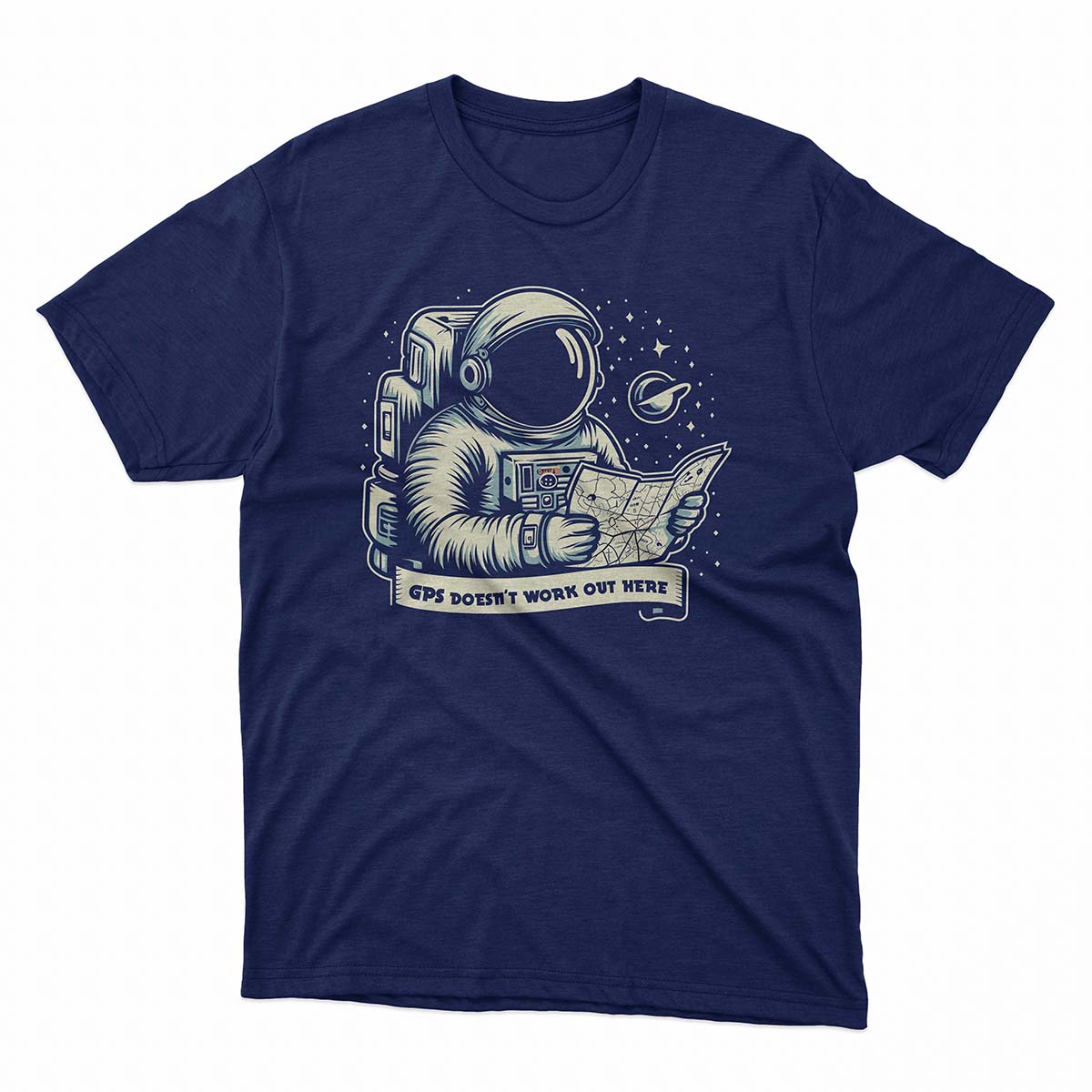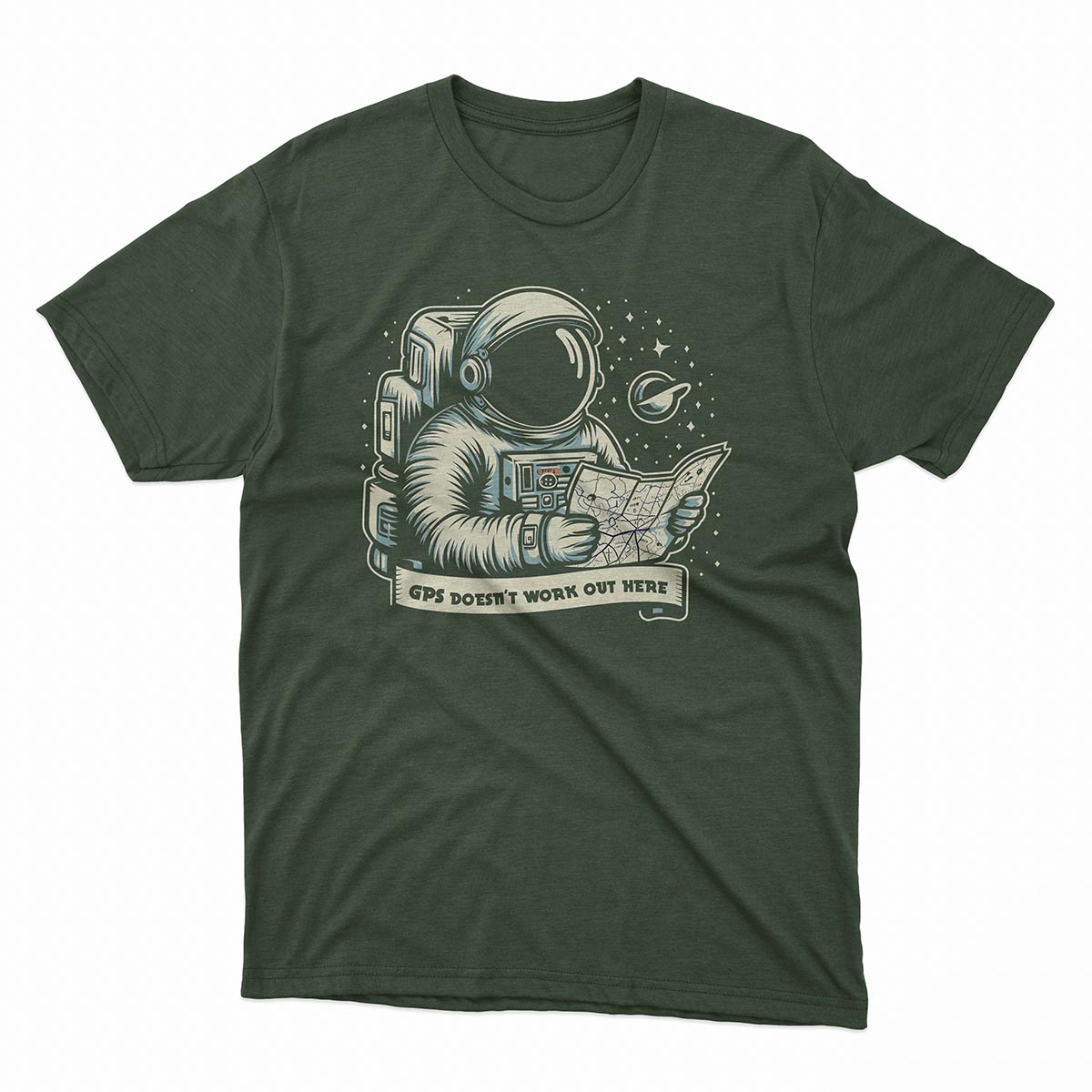 Crafted from premium quality cotton, this shirt offers a comfortable fit that’s ideal for both everyday wear and intergalactic adventures. The clever and playful design features a bold statement that reads “GPS Doesn’t Work Out Here,” reminding us of the vastness of space and the uncharted territories that astronauts bravely navigate.
