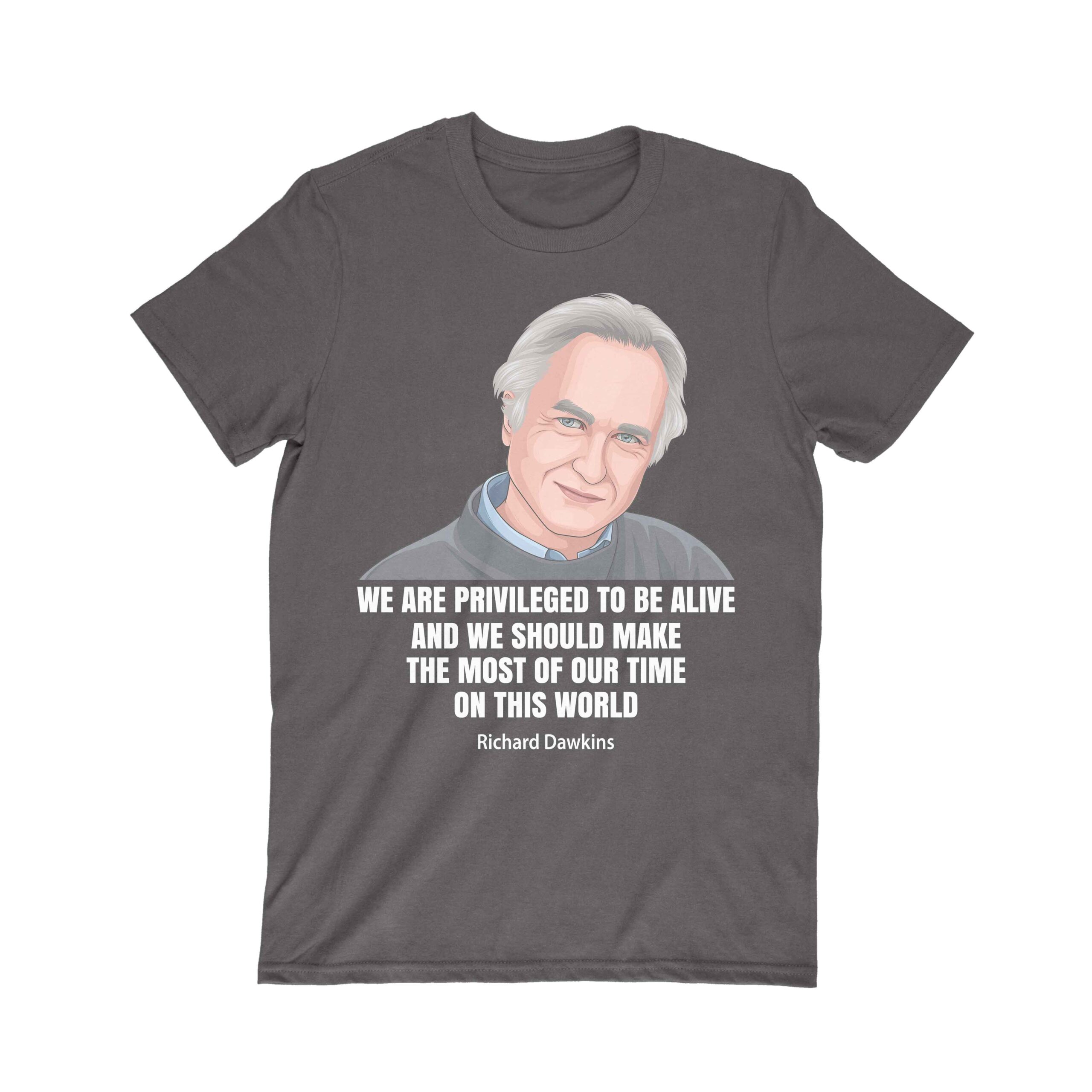 Wearing the “Richard Dawkins T Shirt” is not just a fashion statement; it’s a declaration of admiration for the thought-provoking ideas that have shaped our understanding of life. The captivating artwork and the poignant slogan, “Privileged To Be Alive,” serve as a reminder of the privilege we all share in the grand tapestry of existence.