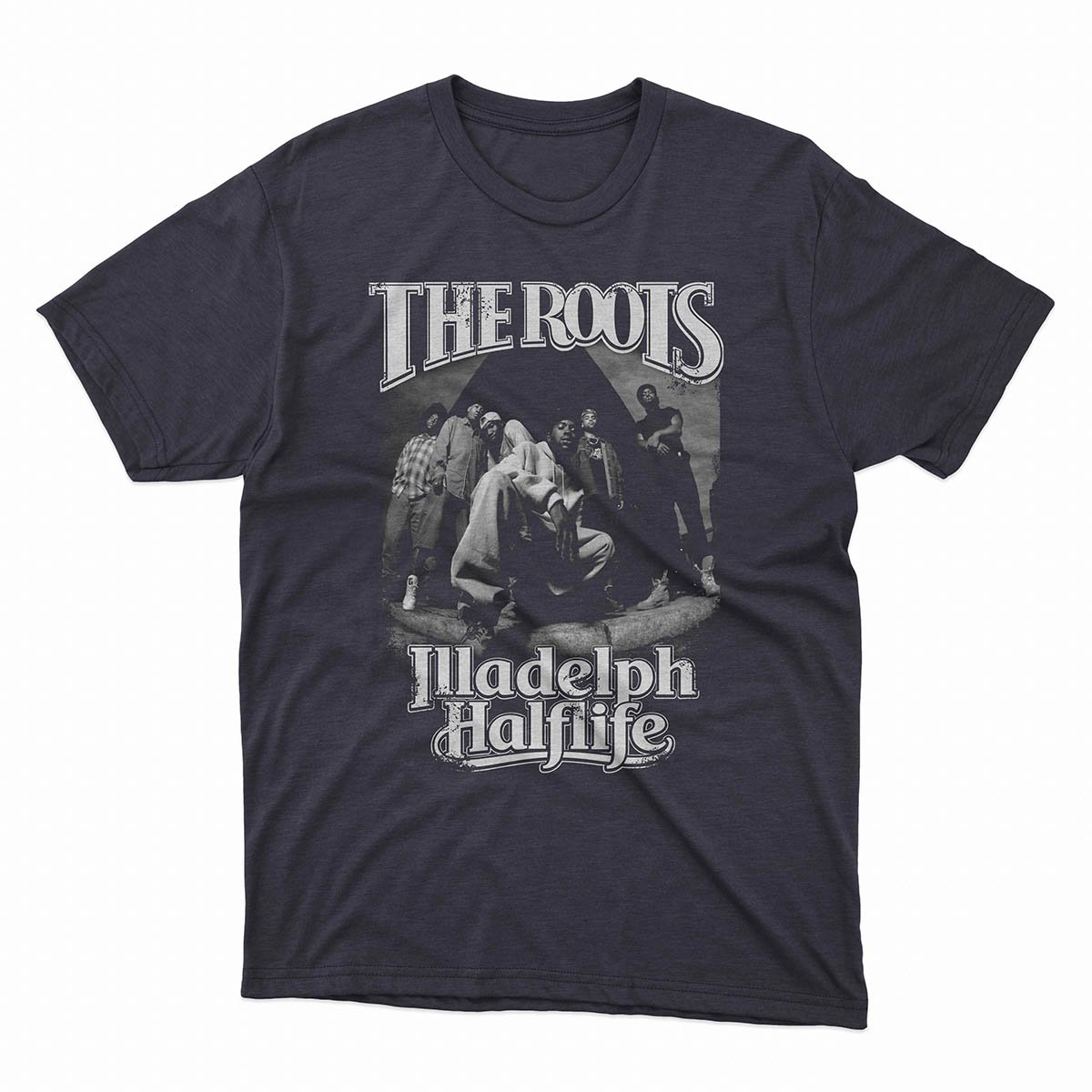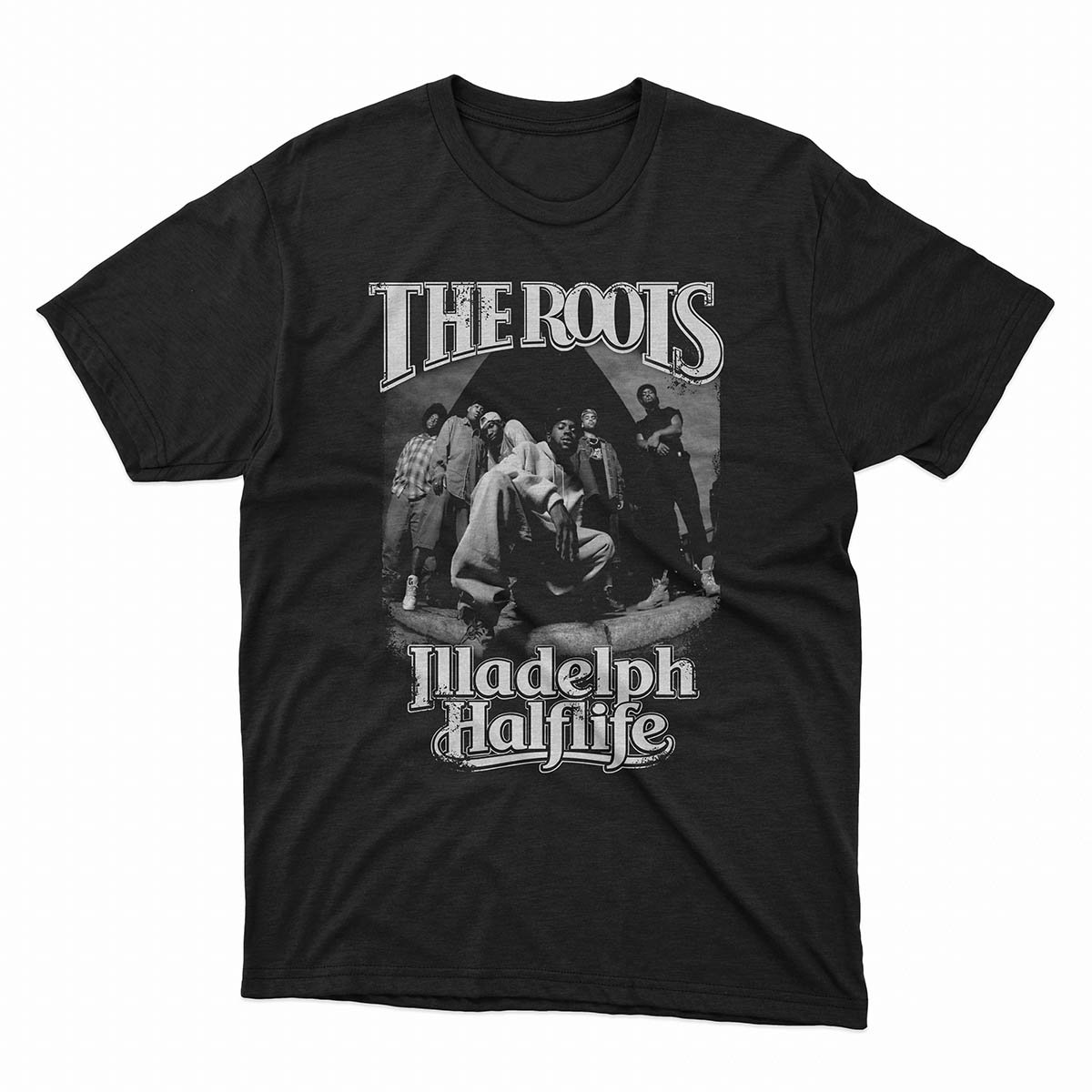 The Roots Illadelph Halflife t-shirt pays tribute to the album that proved live instrumentation and raw lyricism could coexist in hip-hop.